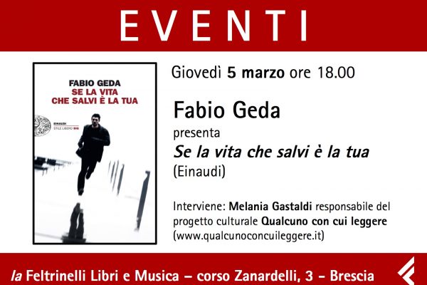 Domani sera alle ore 18, presso la libreria Feltrinelli di Brescia, grande appuntamento aperto al pubblico, con lo scrittore FABIO GEDA. Dialogheremo con lui sul suo ultimo libro "Se la…