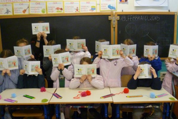 Francesco D'Adamo e Luigi Ballerini alla scuola Madonna della Neve di Adro (BS)